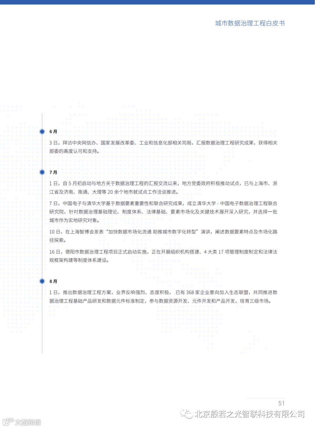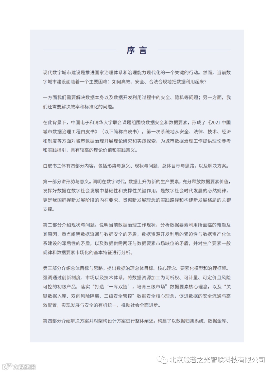 5、面向十四五,城市数据治理工程具有划时代的意义。数字化消费与生产将全面助力高质量发展,数字融合将全面助力经济体系优化升级,数字化转型将全面助力产业链现代化水平提高,数字化资源配置将全面助力产权制度改革和要素市场化配置改革。我们衷心希望各城市以白皮书的发布为契机,以积极有效的制度和政策促进数字经济发展,利用数字技术更有效地调控经济和监管市场,不断提高社会管理和公共服务的数字化水平,同时对数字技术应用进行有效监管。