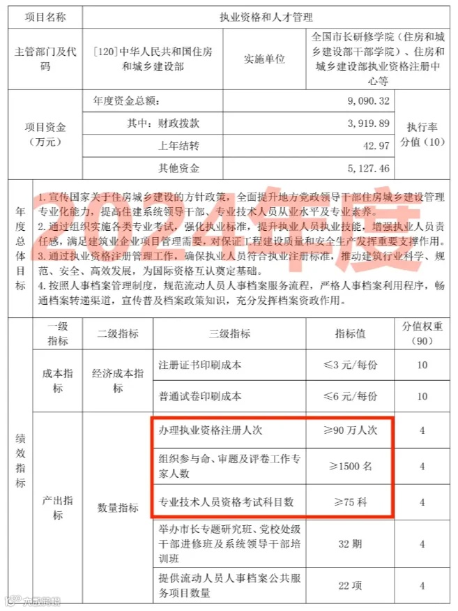 其中《执业资格和人才管理项目绩效目标表》(2024年度)截图如下: