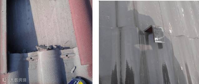 5、弯钩周围用水泥填充并做好防水处理,将瓦片复原。