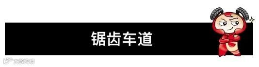 锯齿车道内侧会有多条呈锯齿状的斜线,路中间没有导向箭头,在进入车道前也有交通标识牌来提醒司机。