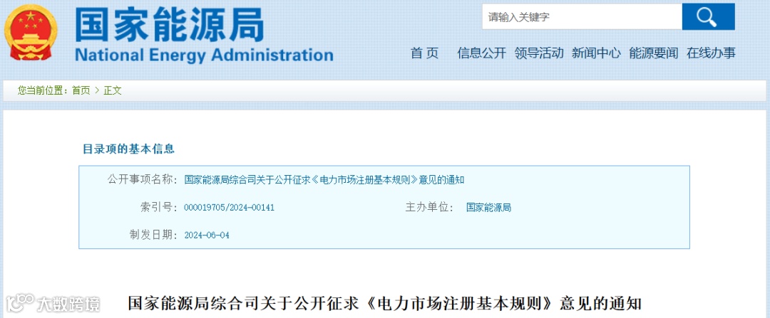 6月4日,国家能源局发布《电力市场注册基本规则(征求意见稿)》。