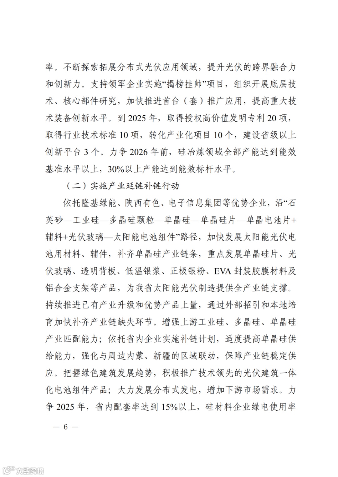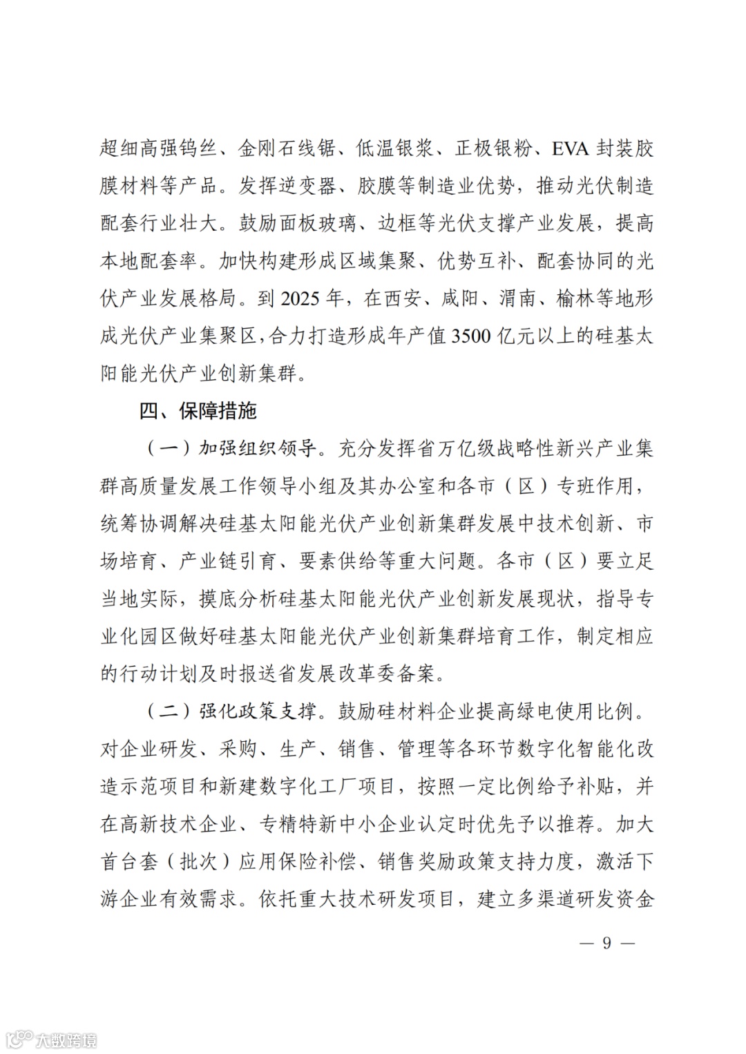 近日,陕西省发展和改革委员会印发《陕西省培育千亿级硅基太阳能光伏产业创新集群行动计划》。文件指出,以大型电站、分布式发电、智能光伏、光伏建筑一体化等应用带动产业发展,深度融入“一带一路”大格局拓展市场。沿产业链条打造以关中为核心的光伏装备制造产业集聚区、以陕北为核心的光伏材料产业集聚区。力争到2025年形成年产值3500亿元以上的硅基太阳能光伏产业创新集群,2035年产值达7000亿元以上。