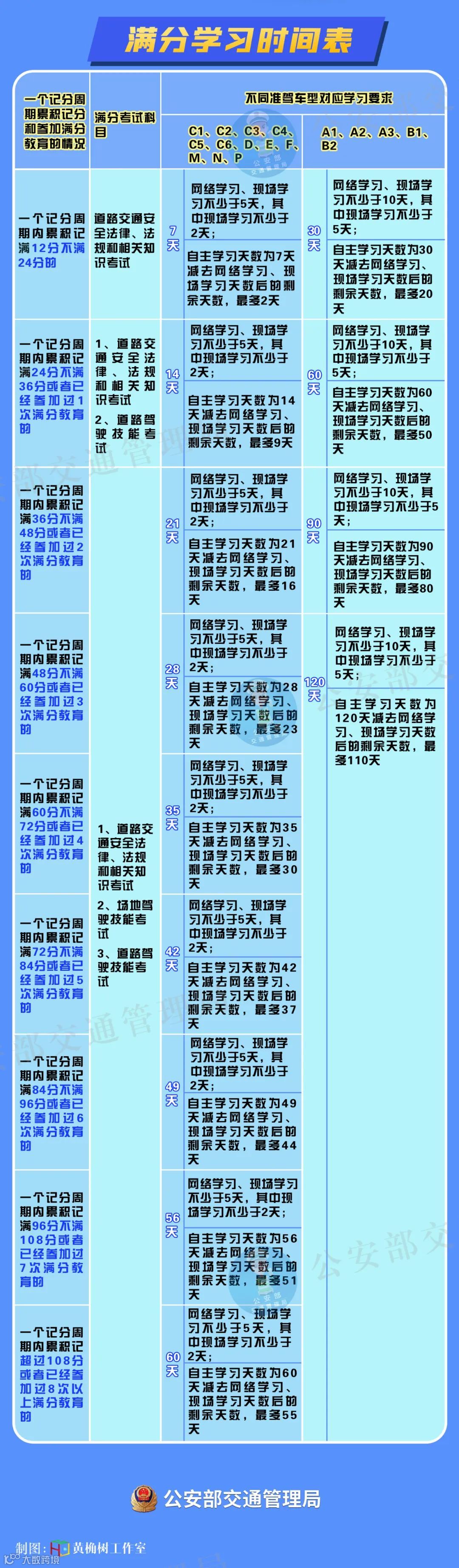 鑫华安救援考虑机动车驾驶人一个记分周期内记满12分的次数越多或者记分分值越高,其安全驾驶隐患就越突出,更需要加强教育引导、严格考试要求。为了消除安全风险、有针对性地教育引导满分机动车驾驶人安全文明驾驶,根据机动车驾驶人准驾车型的不同类别和一个记分周期内参加满分教育的次数或者累积记分达到12分的倍数情况,确定不同的满分学习和考试要求。