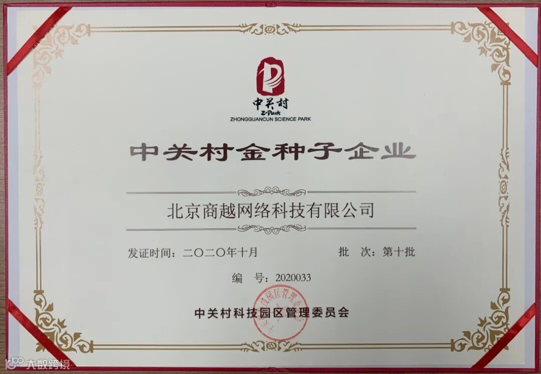 近日,在中关村科技园区管理委员会官方网站发布的第十批中关村金种子企业名单中,北京商越网络科技有限公司经过层层筛选成为新一代“金种子”!