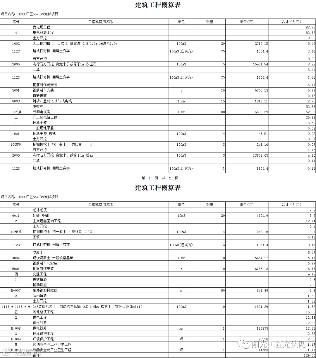 本文详细介绍了一个5.57MW工商业分布式光伏项目每一项的成本构成。详细的概算表格参考附件。为方便读者,对详细报表数据进行简单统计。