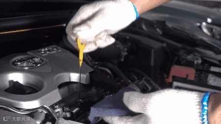 如果是检查机油油量,先拔出机油尺擦干净后再插回去,到底之后拔出,根据机油尺末端的刻度,查看油线是否正常。