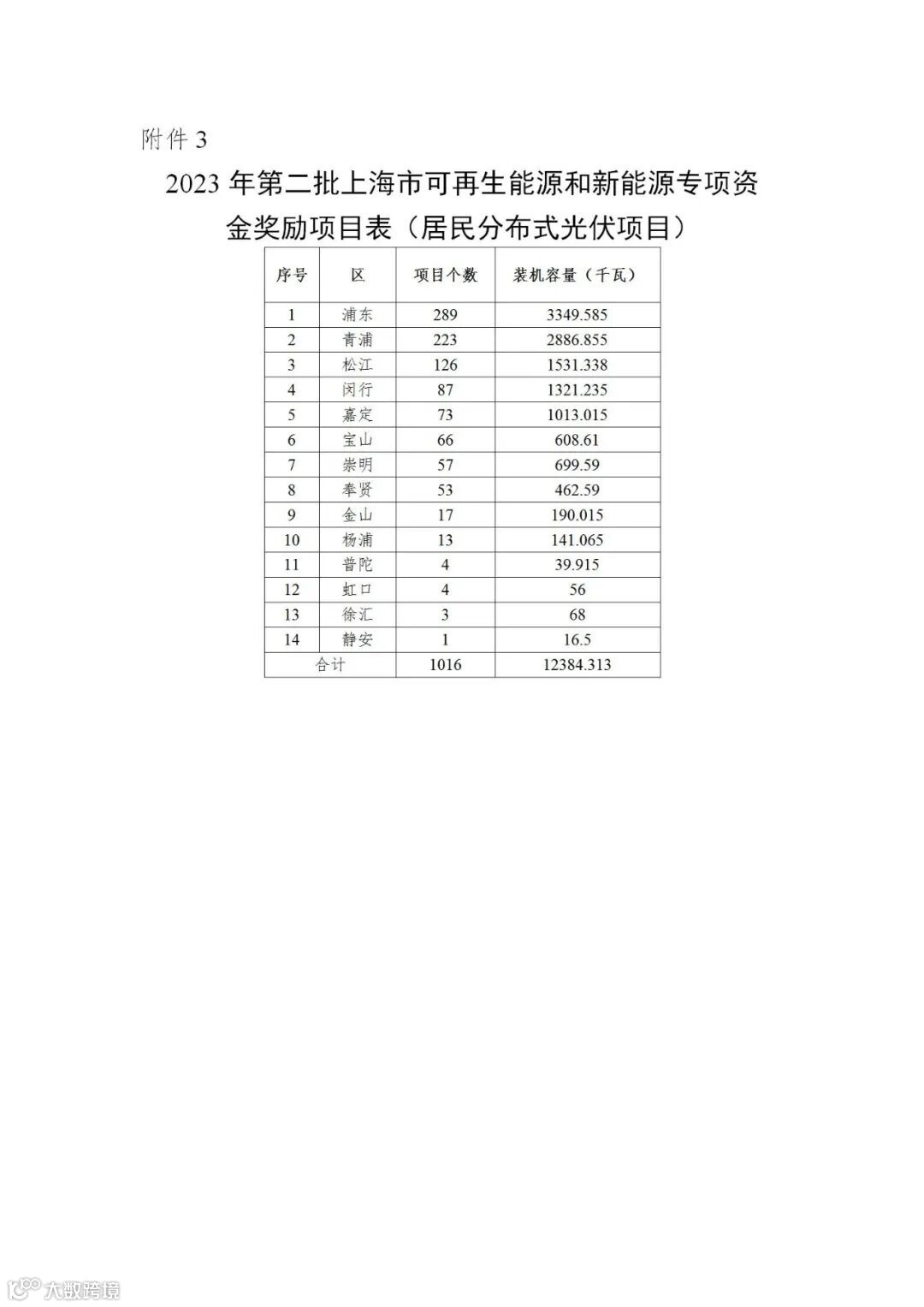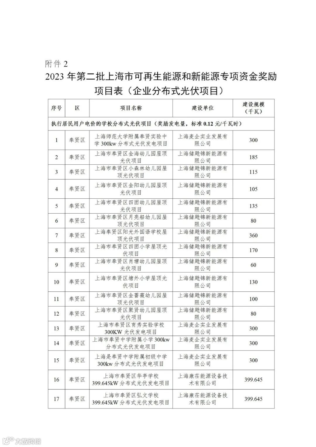 12月4日,上海市2023年第二批可再生能源和新能源发展专项资金奖励目录(草案)公示。