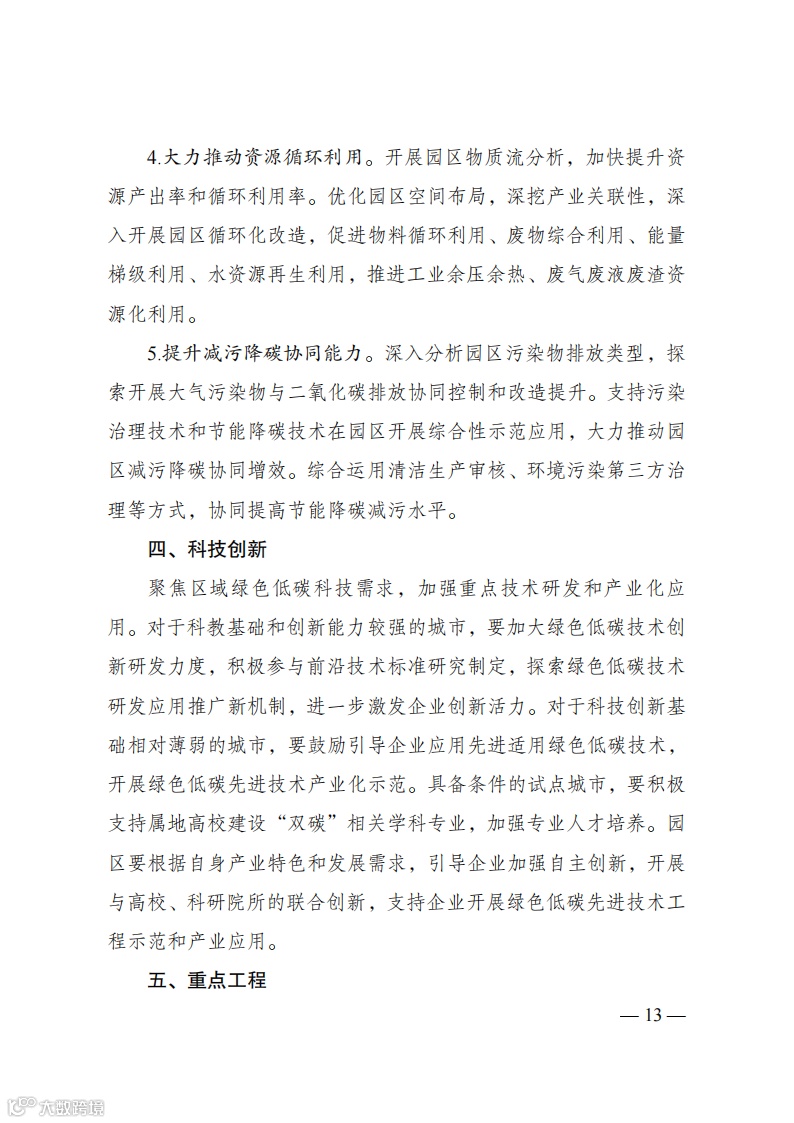 《方案》重点部署了5方面试点建设内容。确定试点任务方面,试点城市和园区要根据国家和所在地区“双碳”工作部署,谋划提出能源、产业、节能、建筑、交通等重点领域试点建设任务。实施重点工程方面,试点城市和园区要结合试点目标,在能源基础设施、节能降碳改造、先进技术示范、资源循环利用等领域规划实施一批重点工程,形成对试点工作的有力支撑。强化科技创新方面,试点城市和园区要创新绿色低碳技术推广应用机制,大力培育绿色低碳产业,加快形成新的产业竞争优势。完善政策机制方面,试点城市要加快建立和完善有利于绿色发展的财政、金融、投资、价格政策和标准体系,创新碳排放核算、评价、管理机制。试点园区要着力提升园区绿色低碳循环发展水平。开展全民行动方面,试点城市和园区要大力推广绿色低碳生活理念,普及“双碳”基础知识,创新探索绿色出行、制止浪费、垃圾分类等方面体制机制,切实增强各级干部推进绿色低碳发展的理论水平和业务能力。