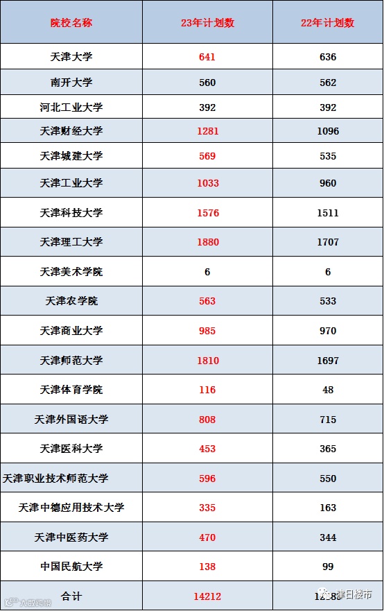 天津各高校方面,录取人数有所扩增:今年天津本地高校相比去年扩招1323人。