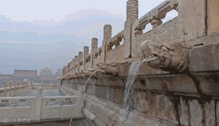 比如说太和门广场,太和殿的水降到了屋面上,通过收集从屋面落到了台基上,台基的水又汇到了院落,都是北高南低,中间高两边低,院里的水有的是流到了这边的明沟,有的就直接从明沟流到了金水河。