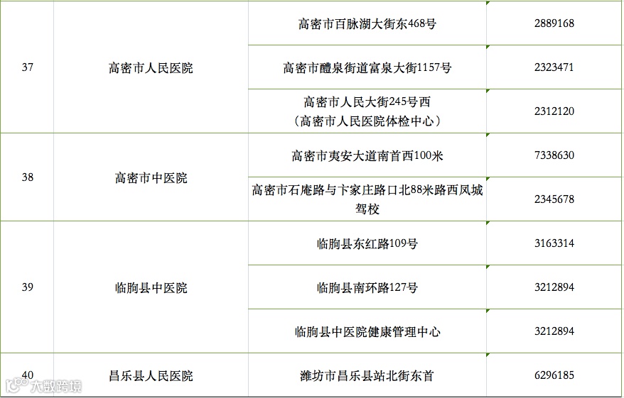 潍坊市驾驶人体检备案医疗机构