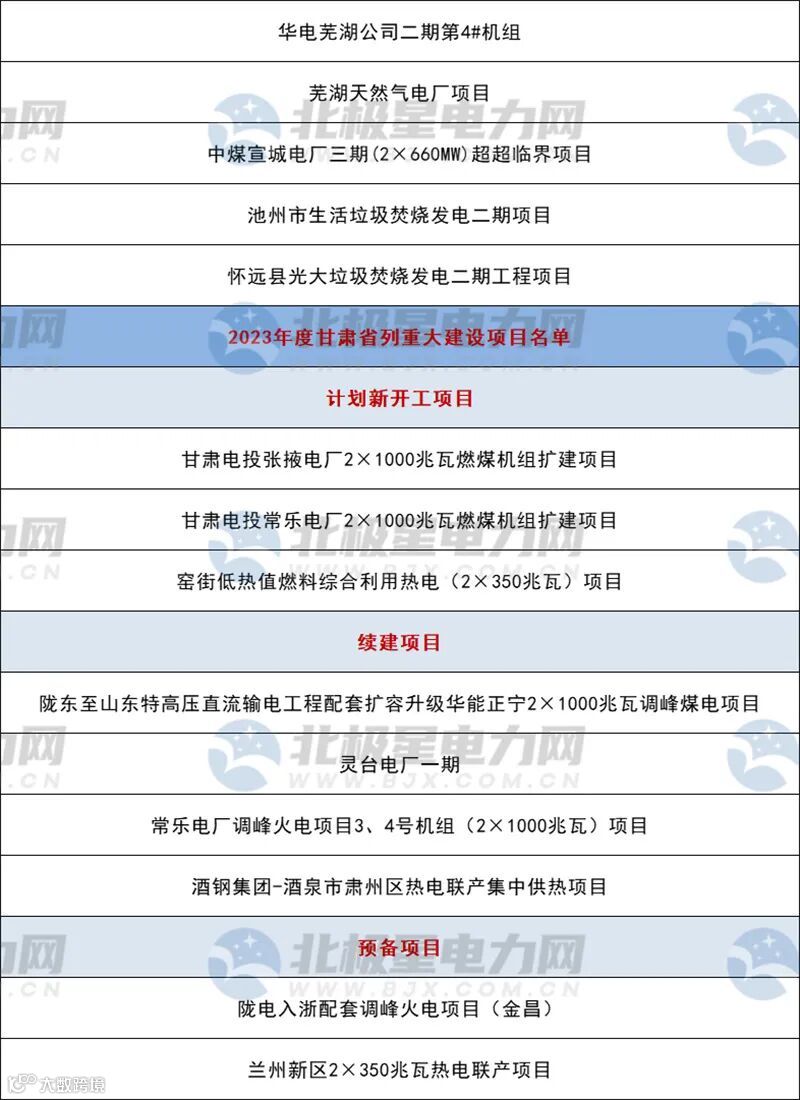 电厂2×1000兆瓦燃煤机组扩建项目、甘肃电投常乐电厂2×1000兆瓦燃煤机组扩建项目,计划新开工;