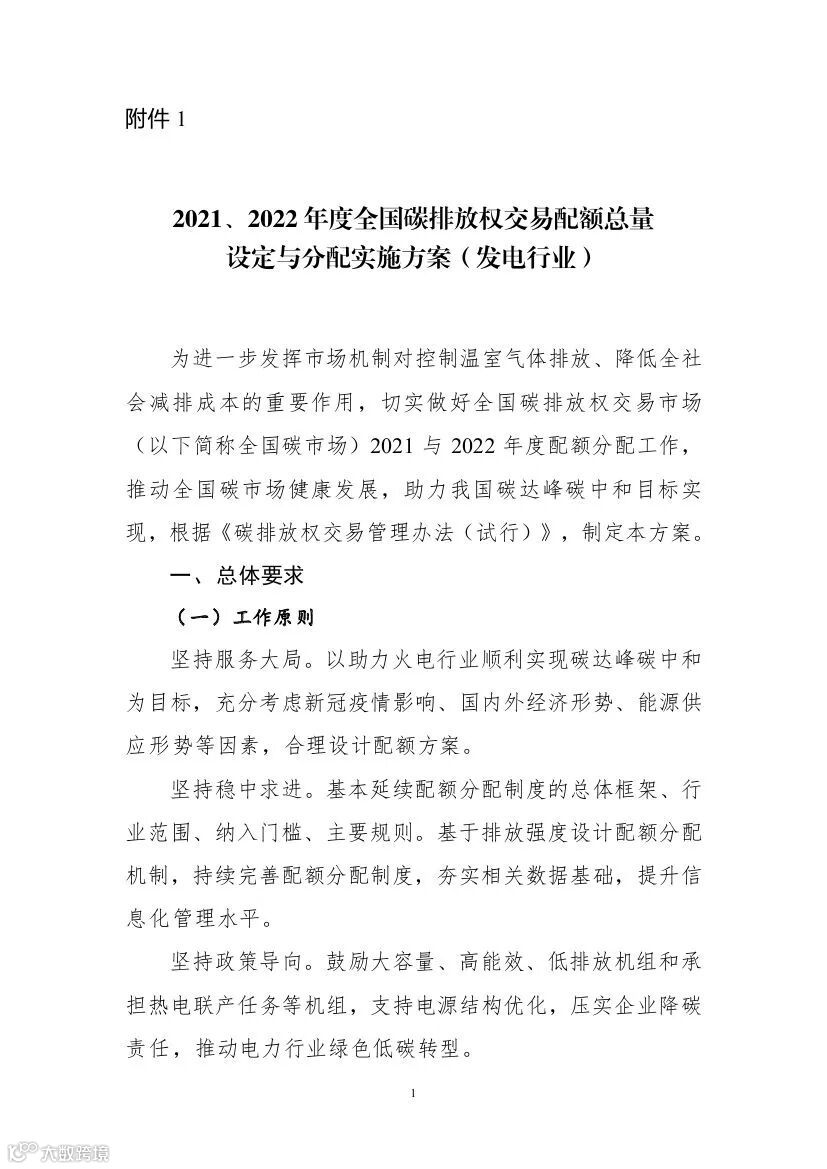 1.2021、2022年度全国碳排放权交易配额总量设定与分配实施方案(发电行业)