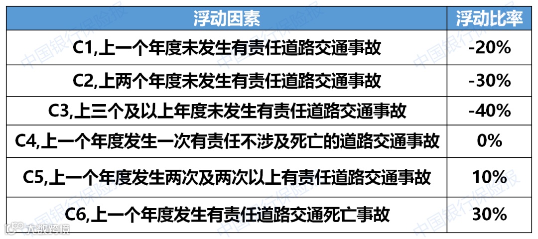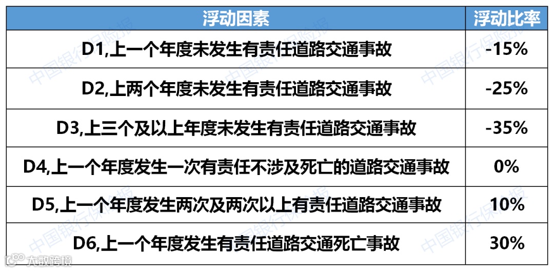 全国各地区的费率浮动系数