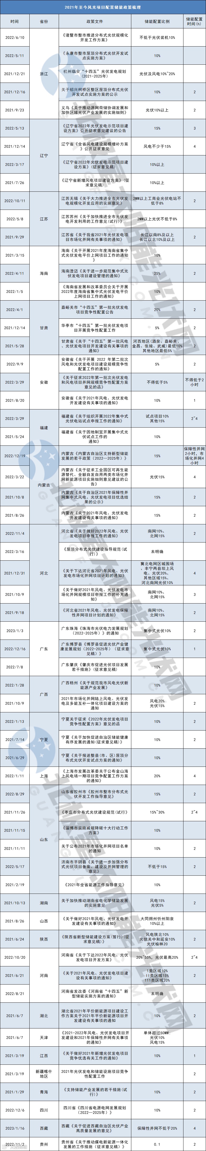 2021年至今各省风光项目配储详情见下表:
