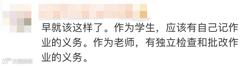 有家长说,不辅导作业,母慈子孝。一辅导作业,鸡飞狗跳。其实,教育孩子,家长和老师各有分工。家长,言传身教,创造好的家庭环境,督促孩子完成家庭作业。老师,传道,授业,解惑。批改作业,自然是老师的职责。现在,让家长批改作业,是老师在推卸责任。老师的缺位,会让更多的家长越位。眼下,升学唯分数论,用作业训练考试能力仍然根深蒂固,如果这种畸形的教育理念和简单的教育手段不改变,恐怕更多的人还会深受其害。