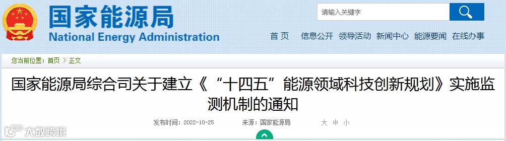 10月25日,国家能源局发布关于建立《“十四五”能源领域科技创新规划》实施监测机制的通知。为深入贯彻“四个革命、一个合作”能源安全新战略和创新驱动发展战略,落实《“十四五”能源领域科技创新规划》(以下简称《规划》),形成合力加快推动能源科技进步,国家能源局将按照“十四五”时期我国能源科技创新的总体目标和重点任务,建立科技创新项目实施监测机制,为市场主体服务,确保《规划》任务顺利实施。