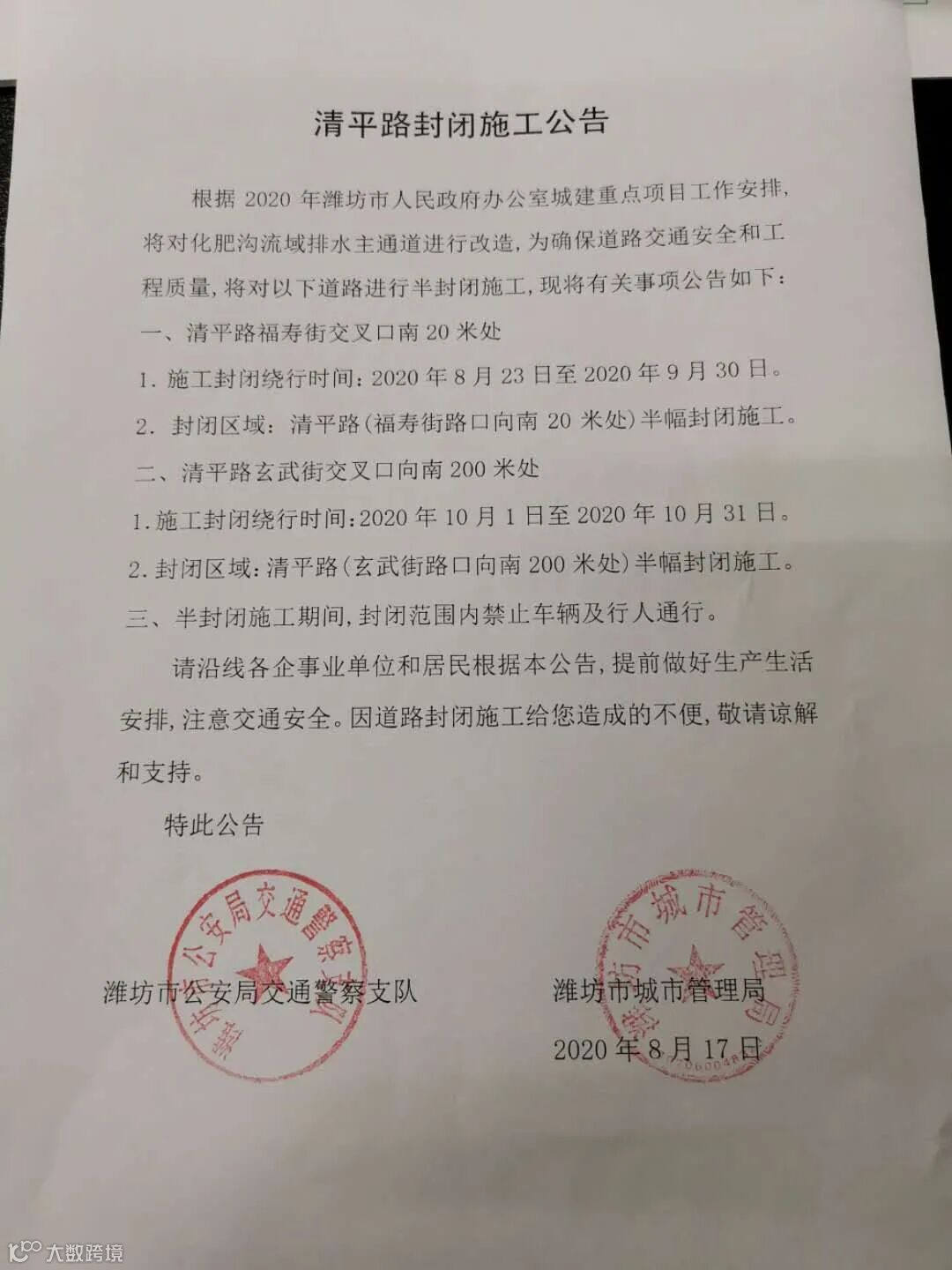 寒亭区潍县中路富亭街路口向东100米路南。