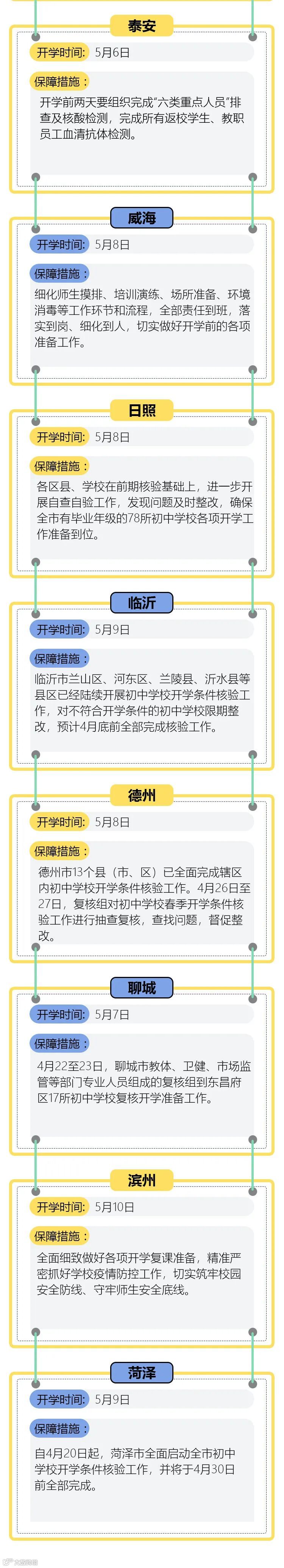 开学地图奉上 山东16市初中毕业班开学时间全定了