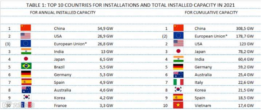 根据IEA数据,无论是新增装机还是累计装机,美国都是全球第二大光伏应用国。