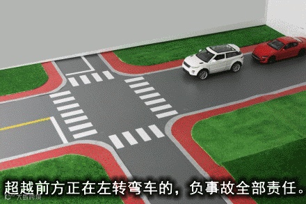 事发现场:无信号灯,直行超车车辆撞上正转弯车辆
