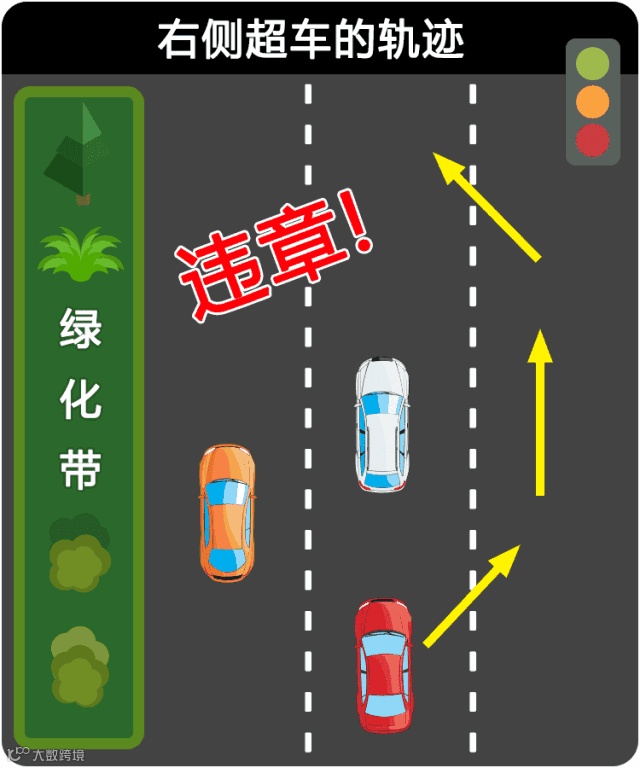 在超车时,后车超过前车变道前,一般都会通过后视镜注意被超车辆的情况,而忽视了对前方情况的观察。而此时如果有一辆车从右侧超车并且也迅速并入车道,这时由于速度过快,驾驶人发现时距离已经太近,来不及反应,很有可能发生剐蹭。