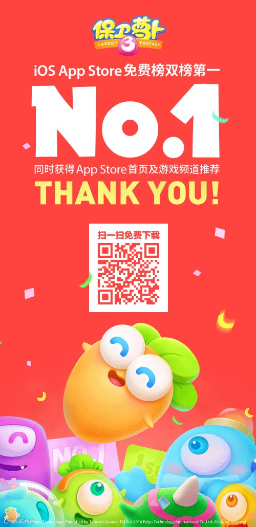 当前游戏市场竞争异常激烈,今年诸多端游IP产品发力手游市场,给App Store各榜单带来强烈冲击,颇有百花齐放之势,但也有不少产品仅是昙花一现。《保卫萝卜》系列产品是经过市场千锤百炼的精品游戏,其成功无疑是厚积薄发的必然结果。期待《保卫萝卜》品牌能给广大玩家带来更多惊喜。