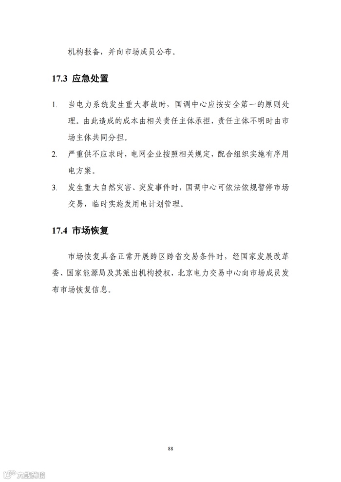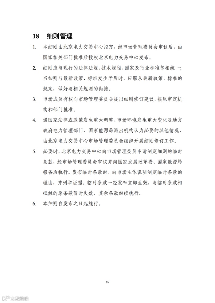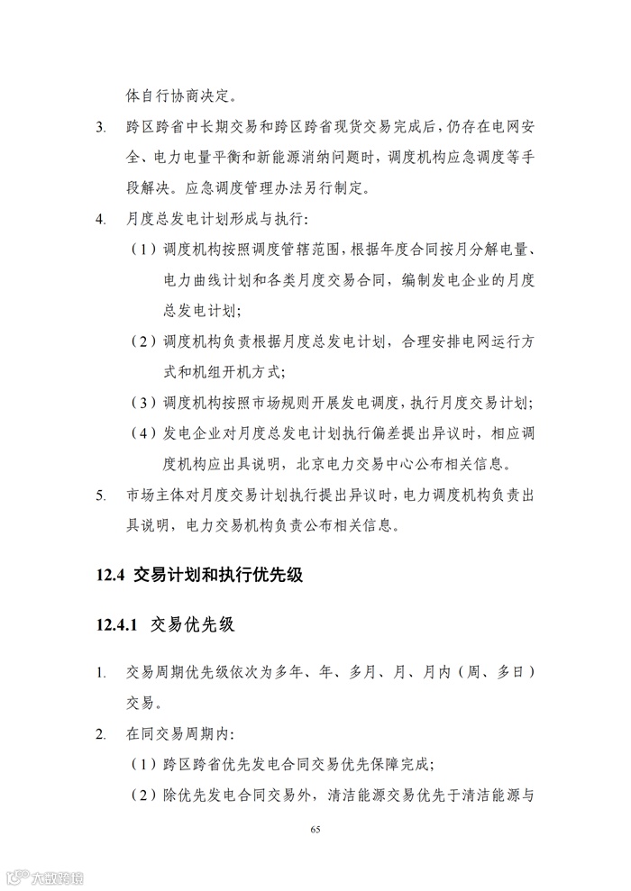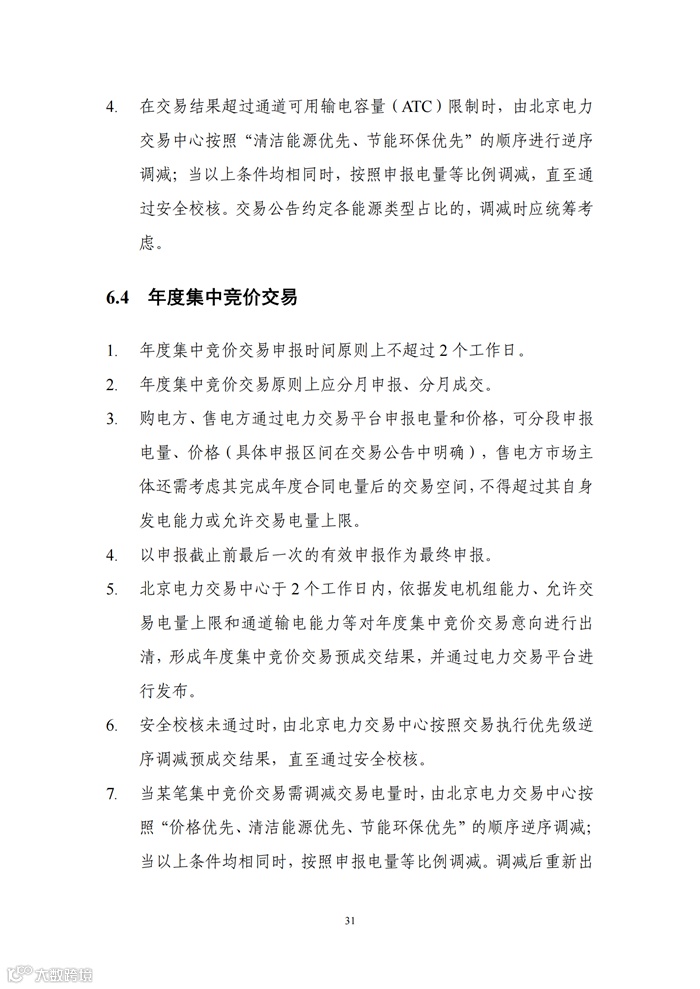 北京电力交易中心跨区跨省电力中长期交易实施细则