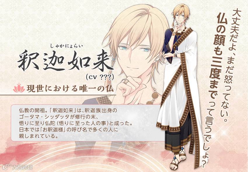 不得不说这个题材实在有点大胆,目前这个游戏除了人物形象和题材之外,并没有公开更多情报,但是把佛祖们做成这副模样,来场养成或者恋爱都是顺理成章的事情了。不知道大家对以上角色设定有什么感想呢?