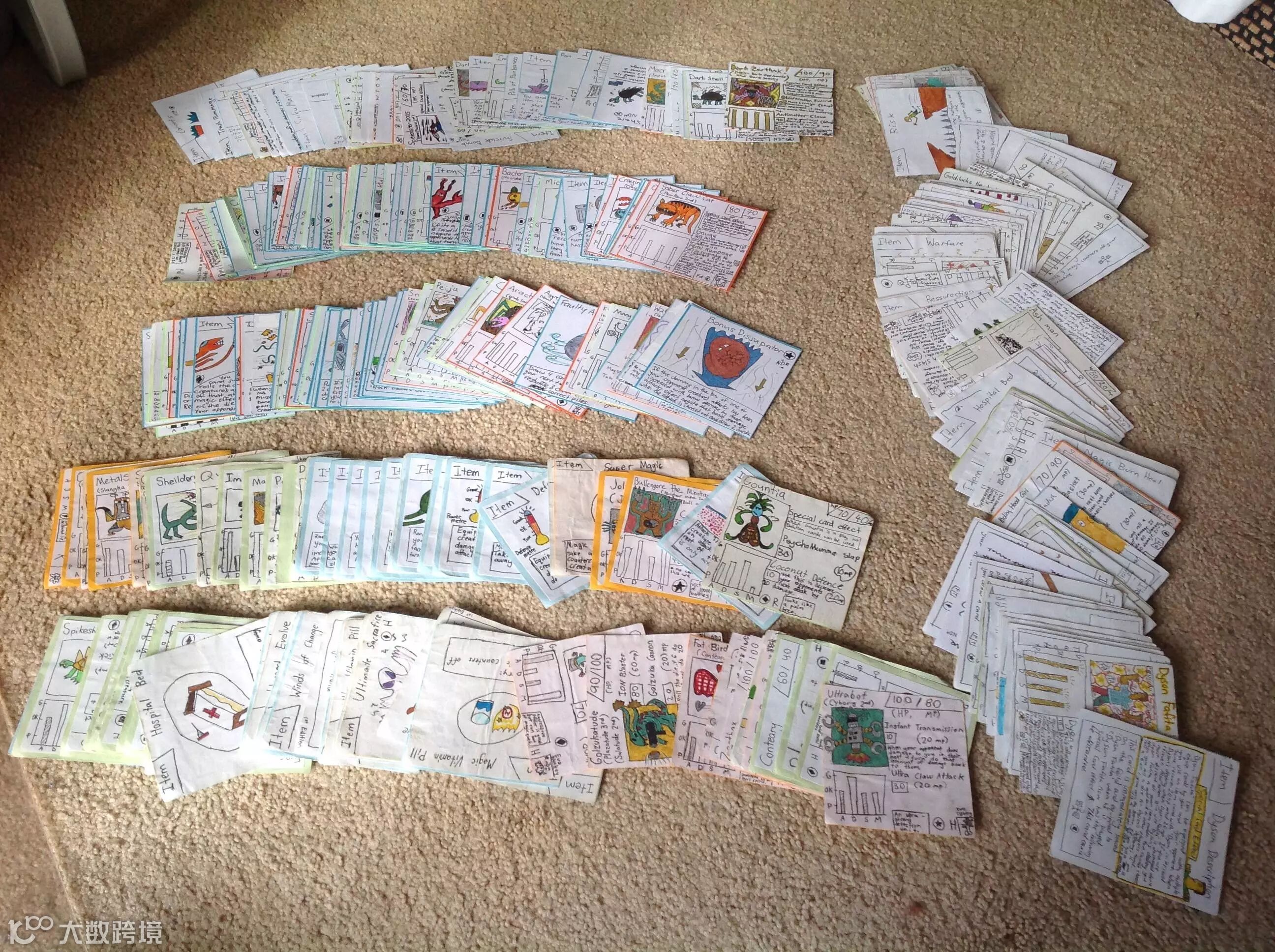 这位小哥是在Reddit网站上发帖阐述自己是怎么做出人生中第一款纸牌游戏,他和哥哥小时候都很喜欢口袋妖怪和游戏王卡牌游戏,但是因为这些纸牌游戏都太贵了,他们买不起,于是他就只好和哥哥自创一套纸牌游戏《生物牌》,从游戏规则和角色属性全都亲力亲为,看到这些牌上的手绘,就知道他们当时有多拼了。