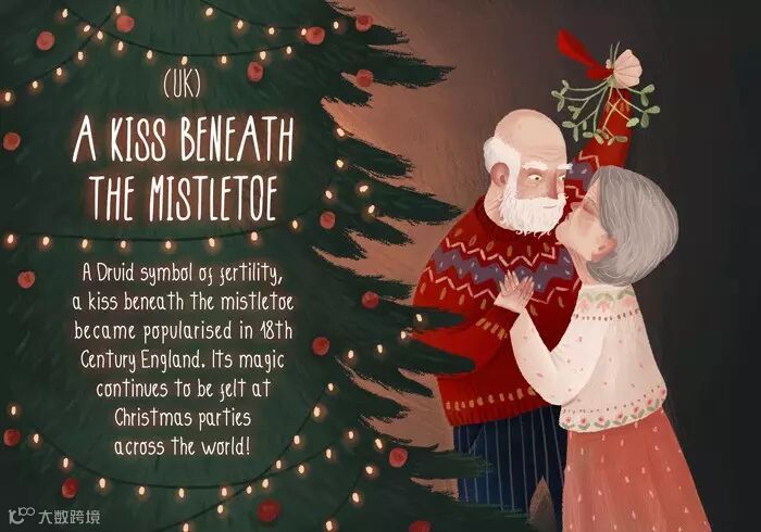 18世纪开始,英国就一直笃信榭寄生象征丰收,所以在榭寄生下相遇的两人都必须接吻才能带来好运,不过现在这个习俗流传到世界各地的圣诞节派对,毕竟这也太浪漫啦。