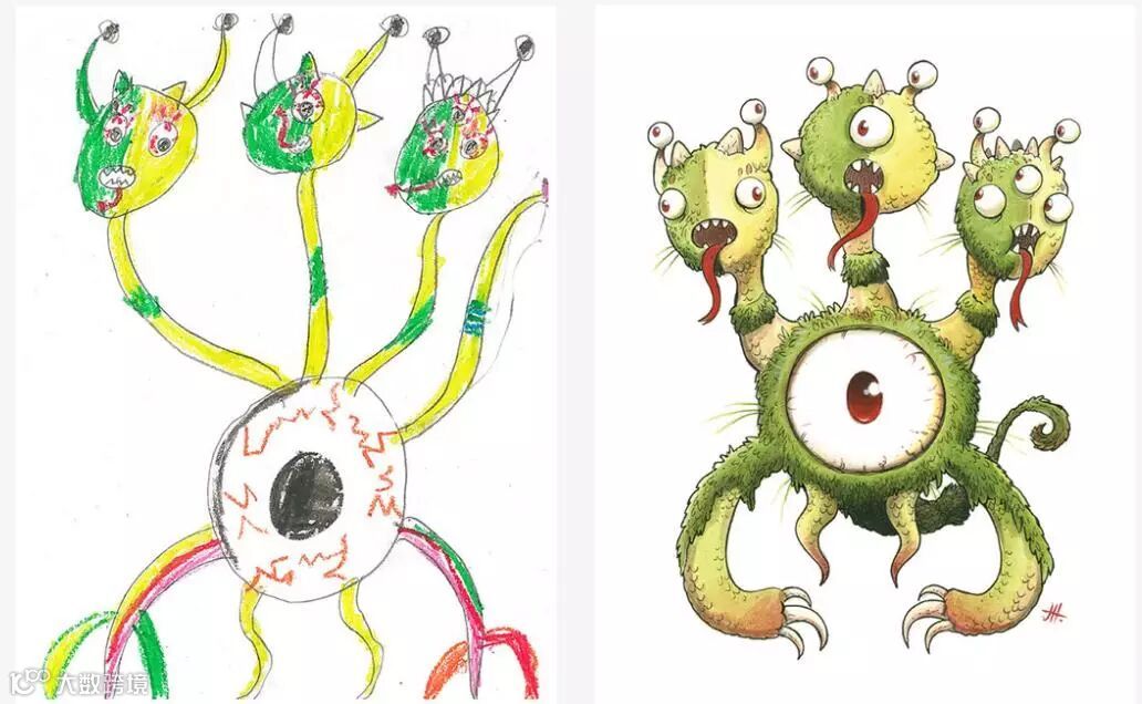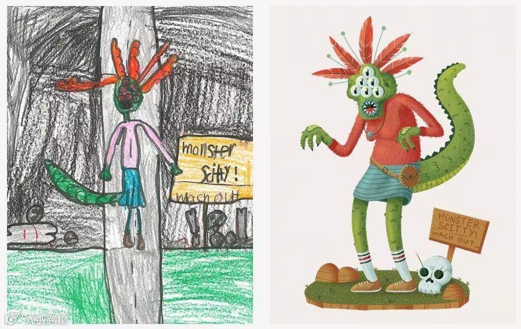 这是一个名为“The Monster Project”的项目作品,这个项目旨在让小朋友画出自己内心深处最可怕的“怪兽”,再由专业插画师、图形设计师和3D设计师们对孩子们的涂鸦融入自己的风格进行二次创造。在这些大触的眼中,小朋友的画作拥有成年人难以企及的想象力和灵感,当不被局限的思维与完美的技术搭配,产生的效果就是这么惊人。