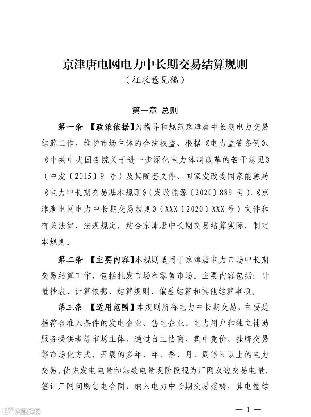 附件:京津唐电网电力中长期交易结算规则(征求意见稿)
