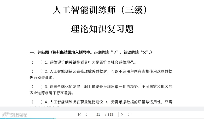 文末附有338页《人工智能训练师》(三级)复习题(样题与答案)