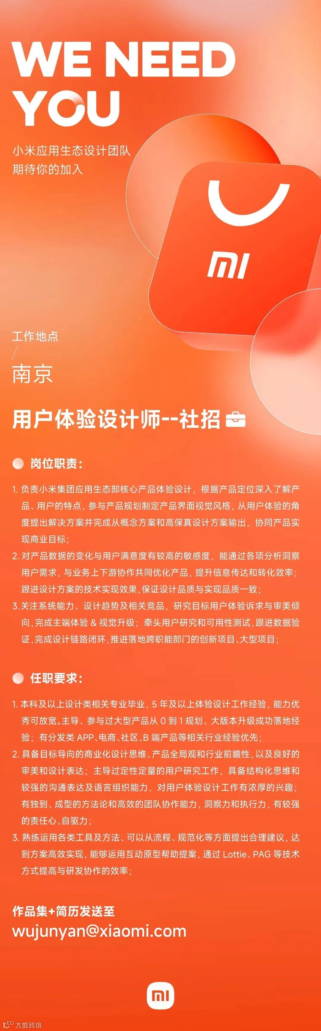 1.设计类专业本科及以上学历,3年以上用户体验设计行业经验