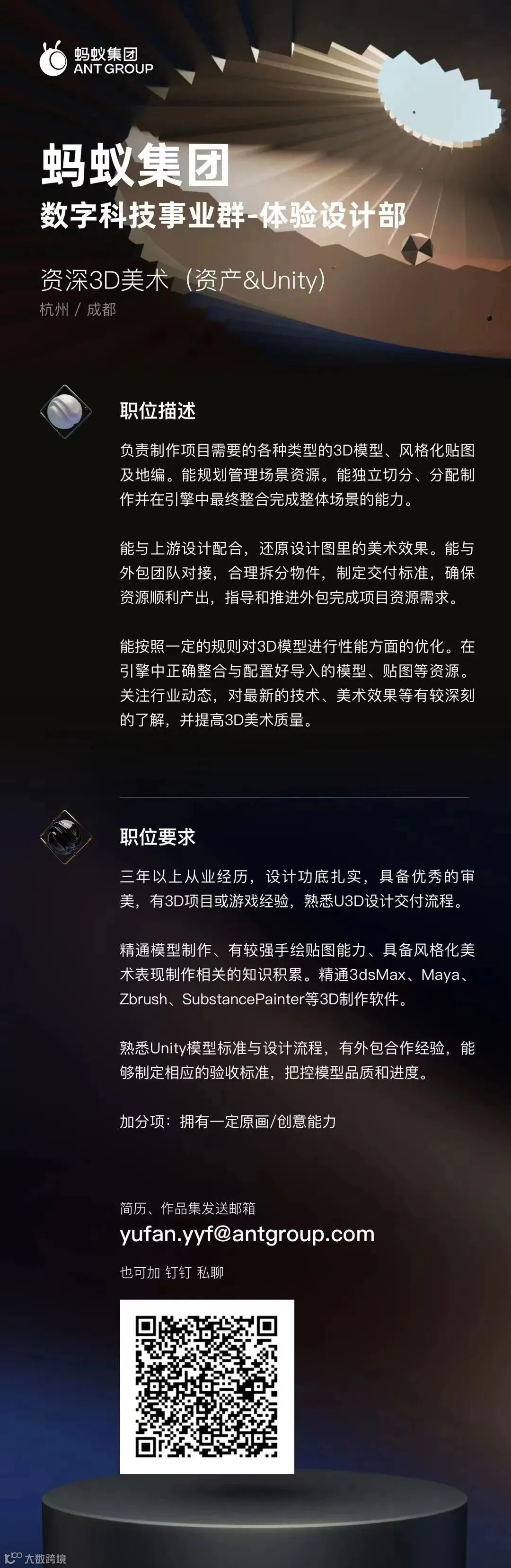 | 杭州 | 蚂蚁集团 | 资深3D美术 | 20-25k |