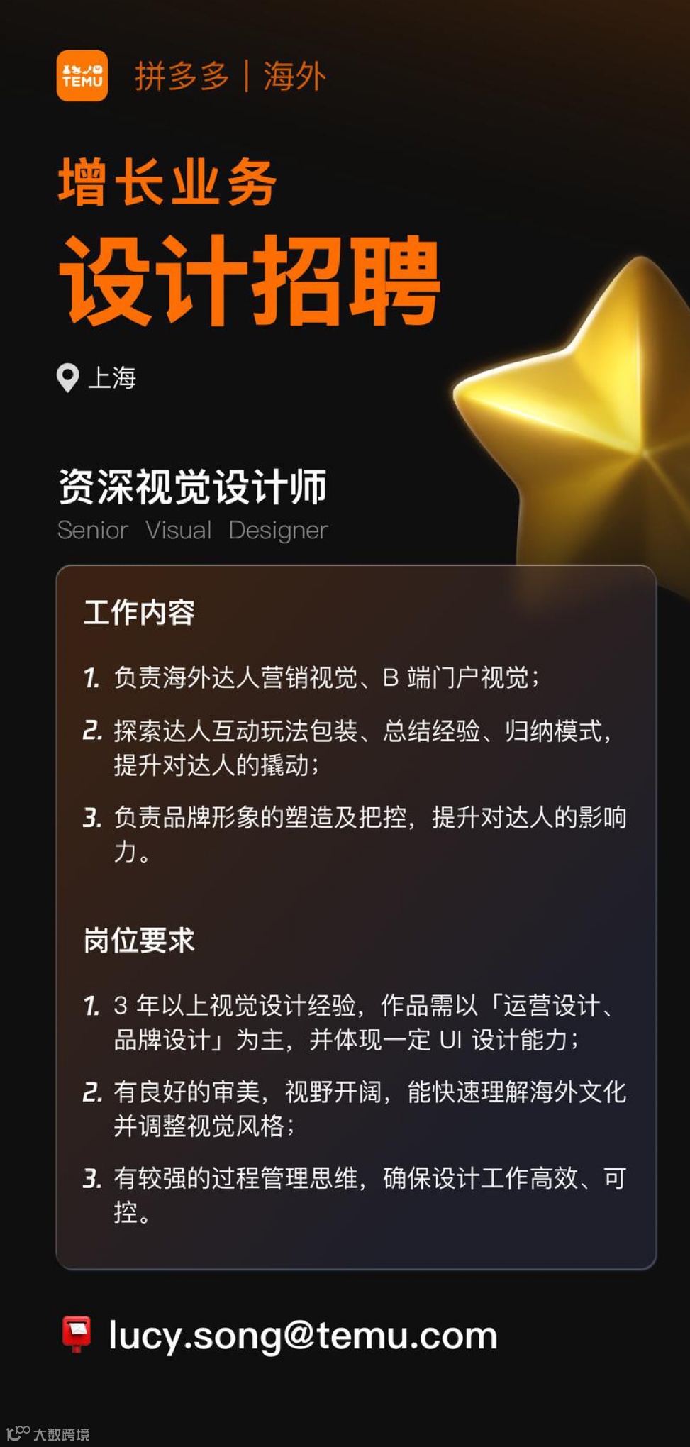 | 上海 | B站 | 海外运营视觉设计 | 15-25k |