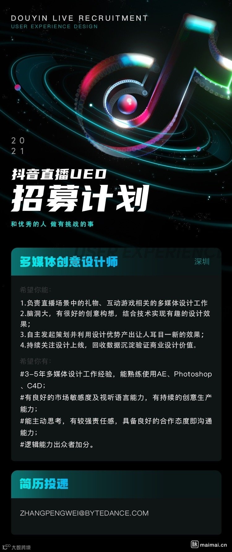 2.动画/动效基础扎实,审美良好,节奏感强,善于捕捉动效设计趋势以及行业动态
