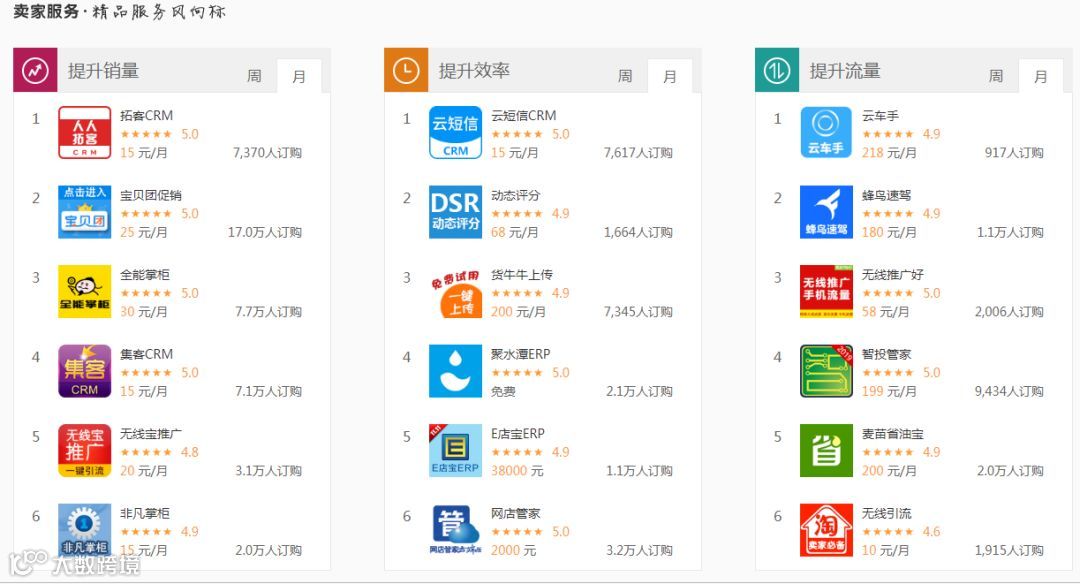 服务作为知识被封装为软件、APP等形态,是消费互联网阶段“基于知识的产业分工”的重要形态之一。在服务市场上,就出现了规模化的“基于知识的产业分工现象”。服务市场(fuwu.taobao.com)作为国内最大的商业服务门户网站,自2009年成立至今,已形成商家经营所需全链路的多元业务生态体系,围绕商家提供包括店铺装修、图片拍摄、视频拍摄、流量推广、商品管理、订单管理、企业内部管理、人员外包、质检品控等相关服务与工具几十万个。
