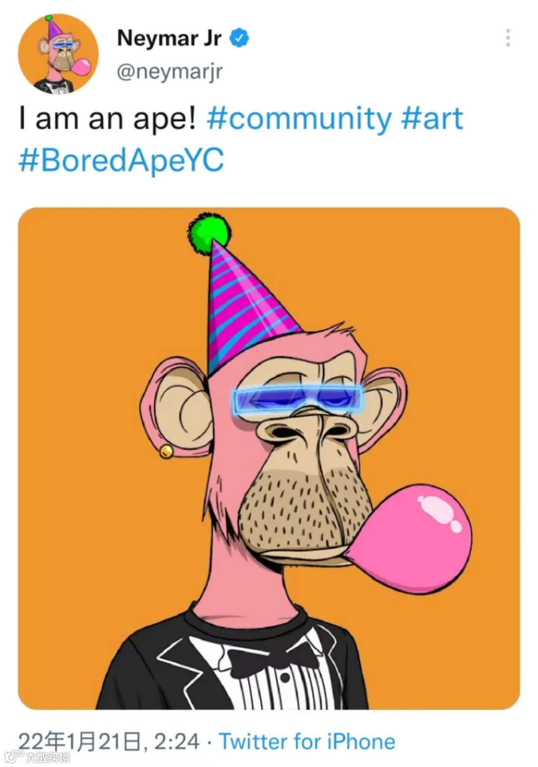 · 著名球星内马尔使用“无聊猿”作为社交平台头像 ·