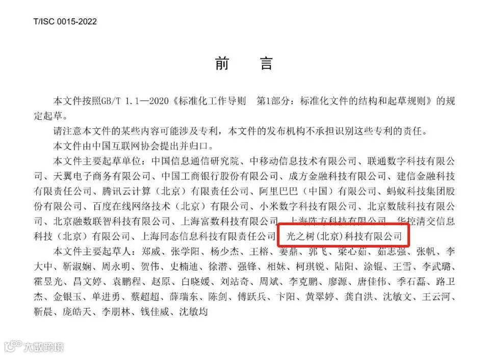8月5日,中国互联网协会发布《金融场景隐私保护计算平台技术要求与测试方法》团体标准(以下简称“标准”),标准编号如下:T/ISC 0015-2022。作为头部隐私计算企业,光之树科技参与该标准的起草与制定。
