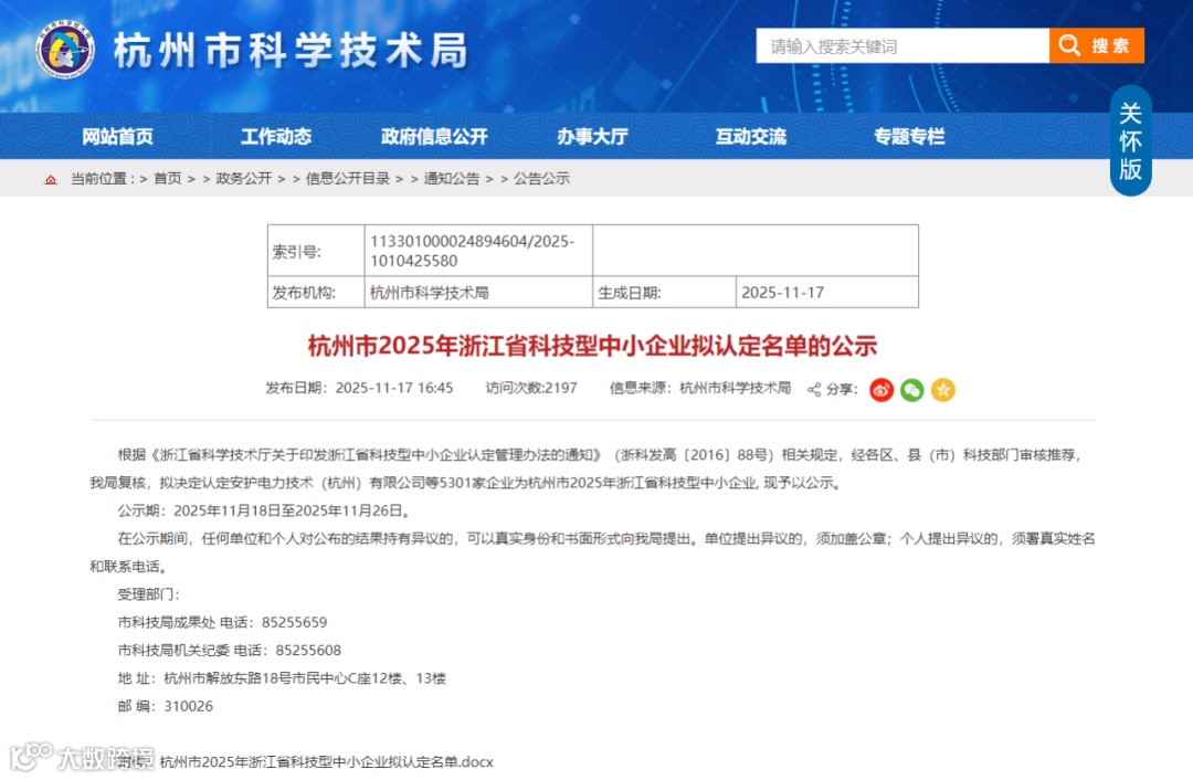 杭州市科学技术局发布了