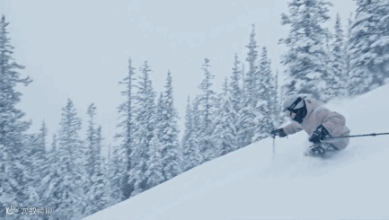 滑雪场景中,雪花溅起的同时进行切割转场,
