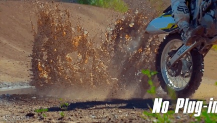 摩托车车轮通过泥地,溅起泥泞的瞬间,