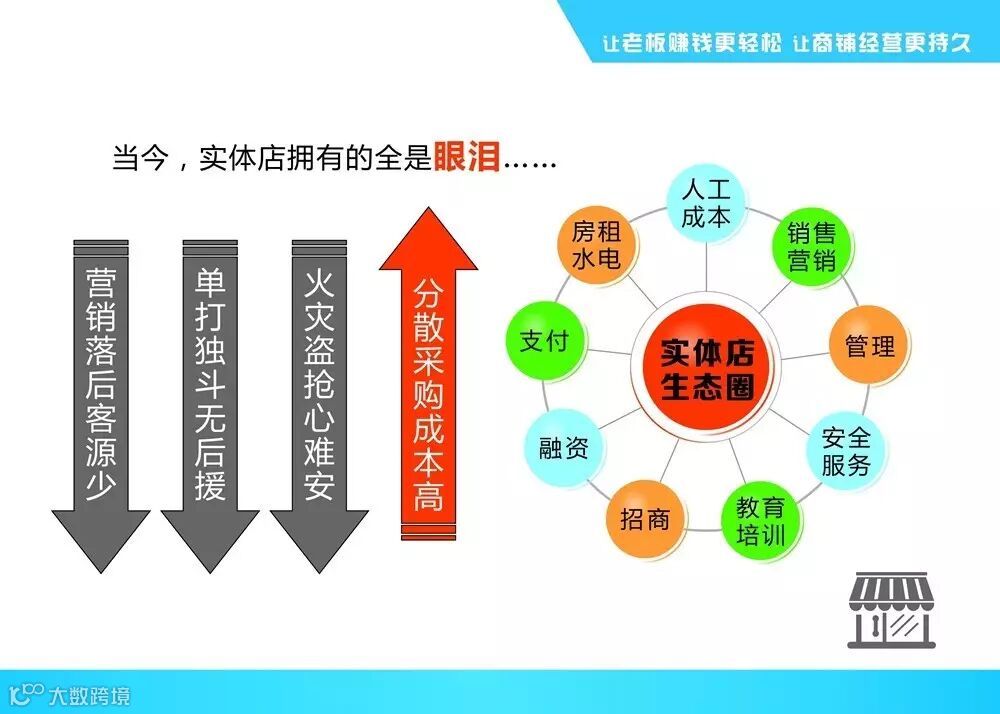 帮助实体店解决运营难题,紧抓实体店消费终端体验,在共享经济模式下,为商铺提供实体店运营服务,帮助商铺引流、消费分享、实现二次购物、裂变消费,提升复购率、客流量,创造实体店微利时代收益神话!