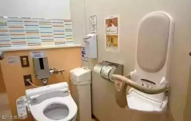女性厕所前有化妆台;带婴儿的妈妈如厕时,可以把孩子放到靠墙的小圈椅中固定好;儿童厕所不仅便池洗手池矮小,还带扶手,还贴有可爱的卡通图画。