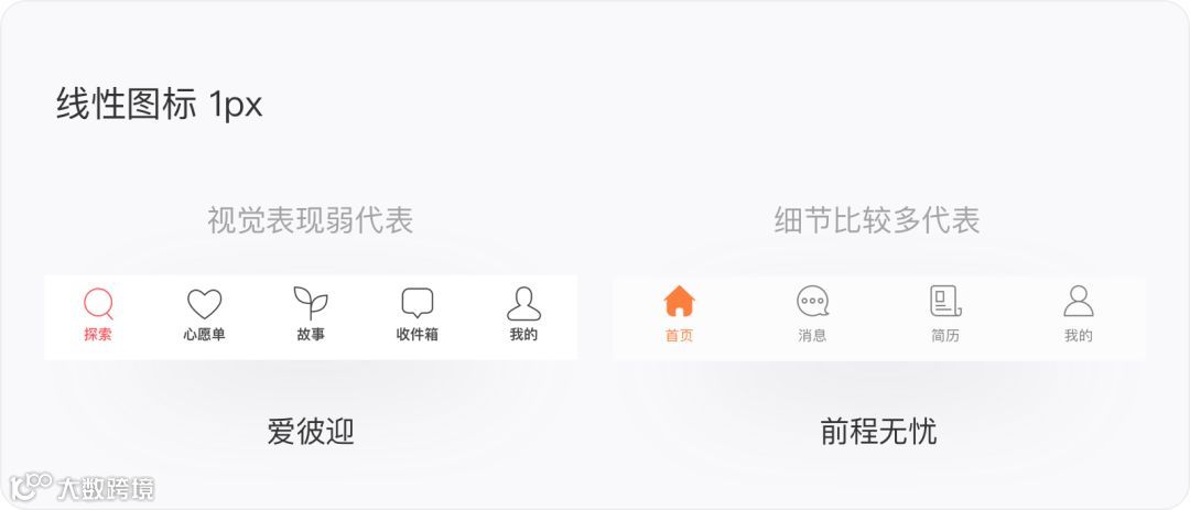 为什么大部分的产品会使用2px和3px的线性图标呢?因为图标线条的宽度越大,可展示的细节就越少。