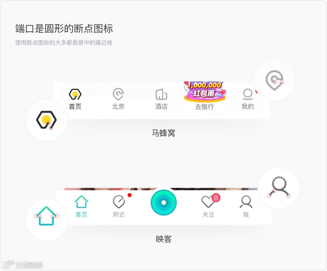 其次也要避免使用断点图标,虽然很多图标断点之后的确更耐看,但是介于产品规范及视觉一致性。