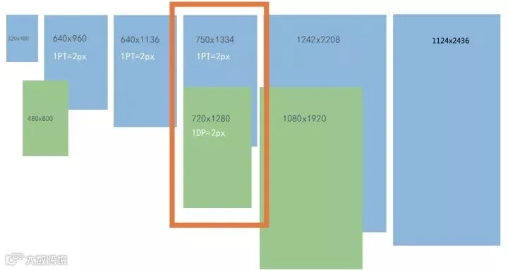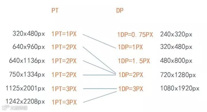 下,1DP=1PT=2PX,在三倍图的情况下,1DP=1PT=3PX。