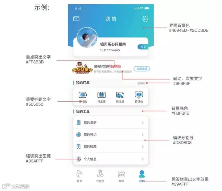 APP UI规范,一般头部写明APP名字,适配图片尺寸,一般以1倍DP,或者2倍PX